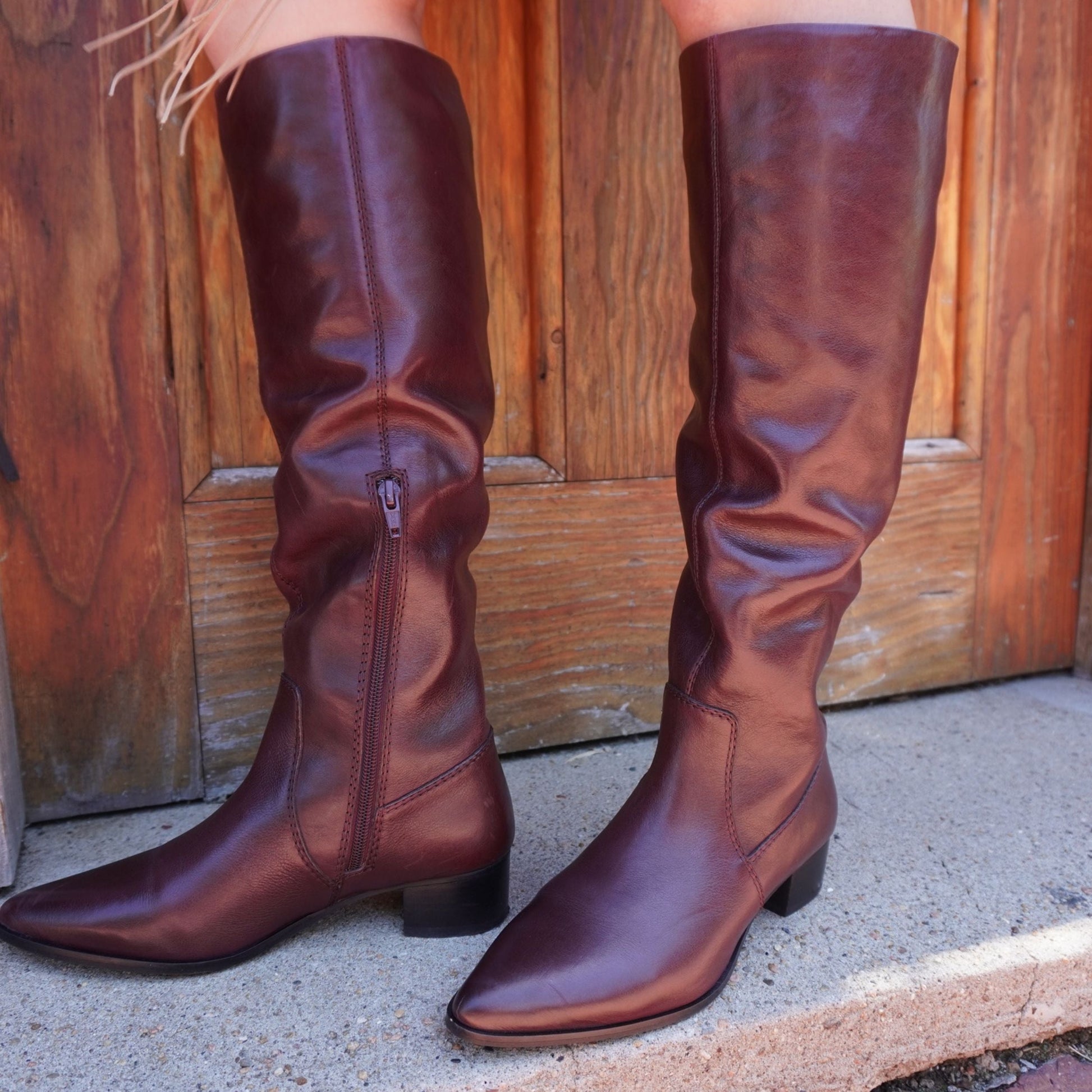 The DIG ITAL by Diba True is a knee-high leather or suede boot designed for timeless elegance and everyday wear. Crafted from genuine leather or suede, this sleek tall-shaft boot features a pointed toe for a refined silhouette and a 1.5-inch stacked block heel for the perfect mix of comfort and style. The inside zip closure ensures easy wear, while the versatile design makes it effortless to pair with anything from jeans to dresses.