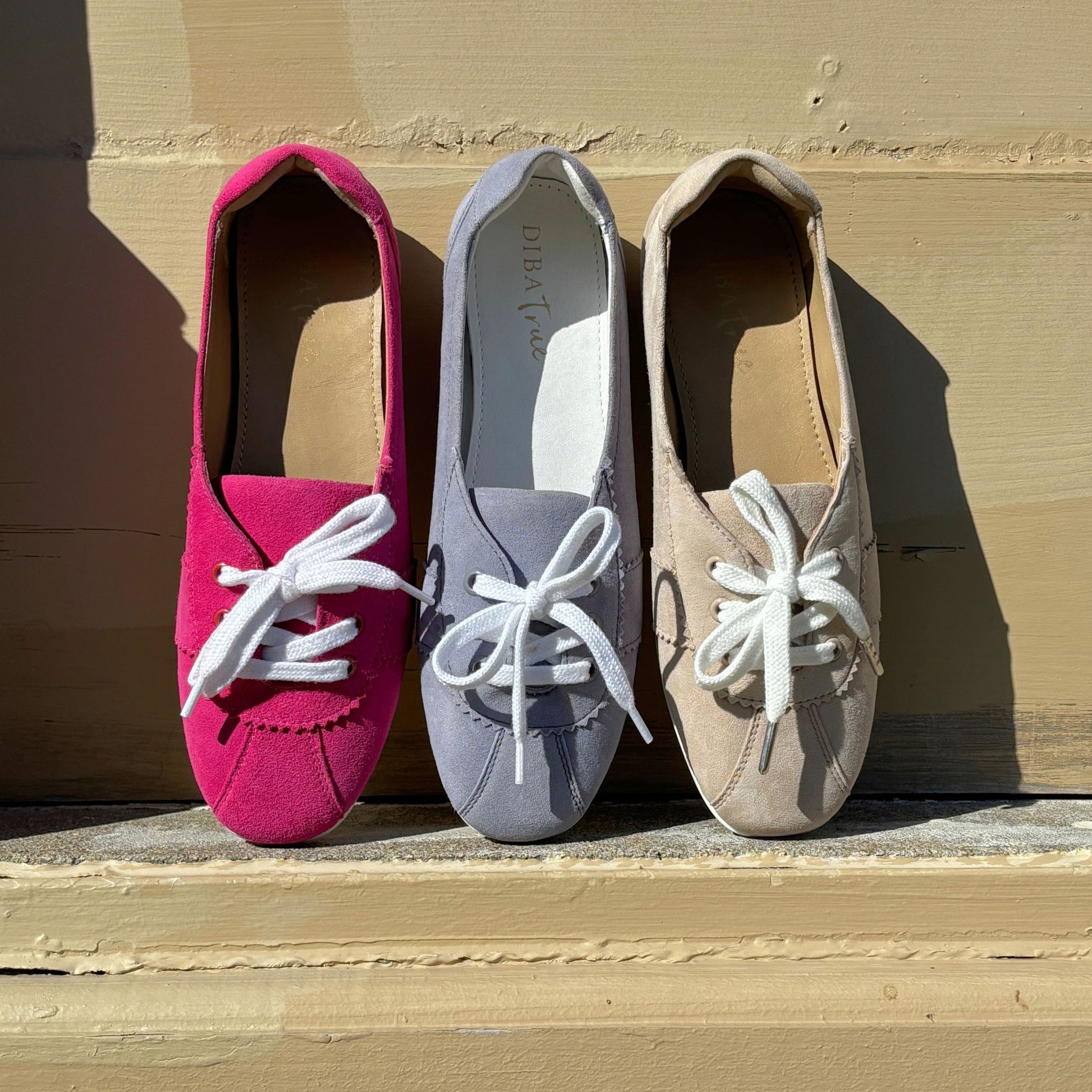 Step into casual elegance with the RIGHT THYME sneaker by Diba True. Inspired by classic ballerina silhouettes, this lace-up design blends sporty comfort with feminine flair. Available in rich suede or smooth leather, it features an almond toe and a flexible rubber sole for all-day wear.